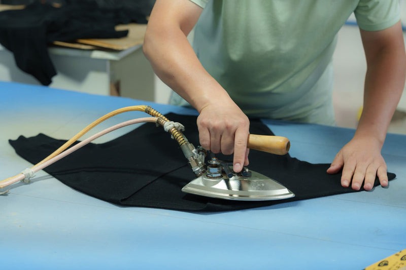 Using specialized steam ironing equipment and custom-shaped boards, we carefully smooth and set the cashmere garment’s